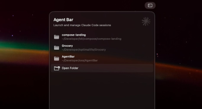 Agent Bar seamlessly integrates into your macOS menu bar, providing a native Graphical User Interface (GUI) for Claude Code. Effortlessly select a project, interact with the AI using your voice, observe tool calls streaming in real-time, and either manually approve or set up auto-approval for actions. Plus, you can accurately track token costs, all from the convenience of your desktop environment without needing to switch applications.