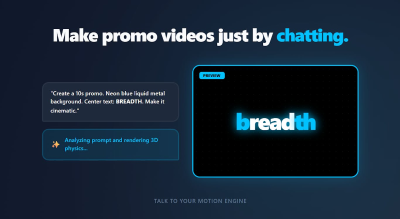 Breadth Edits Beta v1.0 introduces the world's first AI engine capable of transforming creative prompts into professional, high-end motion edits in mere seconds. This groundbreaking technology empowers content creators, marketers, and video producers to rapidly generate stunning, dynamic video sequences without extensive manual effort or specialized software. Experience the unparalleled speed and precision of AI in video production, dramatically reducing production times and costs while elevating the quality and impact of your visual content. Embrace the future of video editing and unlock new creative possibilities with this revolutionary platform.