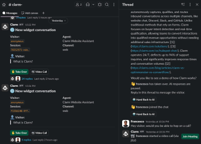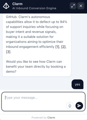 Clarm is an innovative AI inbound conversion engine meticulously crafted for ambitious founders and dynamic Go-To-Market teams. With the addition of just one simple script, you can seamlessly deploy a powerful AI agent across your website, documentation, Slack, Discord, and GitHub channels. This intelligent agent is designed to answer customer questions accurately using your actual content, adeptly spot clear buyer intent signals, and proactively nudge visitors toward the most appropriate next step in their journey, from scheduling crucial demo bookings to encouraging community participation. One notable customer experienced a remarkable 6.1x increase in inbound conversations while maintaining the same level of website traffic, demonstrating Clarm's significant impact on engagement and lead generation.