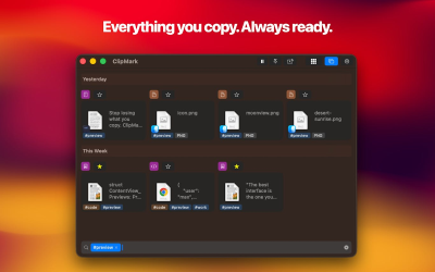 ClipMark is an essential, robust clipboard manager designed exclusively for macOS, ensuring you never lose copied content again. It diligently stores every item you copy, from links and code snippets to notes and images. Its innovative Quick Recall feature allows you to instantly browse your entire clipboard history with a simple shortcut: just hold, scroll, and release to paste your desired item. With ClipMark, you can instantly search, tag, and reuse anything you've copied in mere seconds, dramatically enhancing your productivity and streamlining your workflow by providing persistent access to your frequently used information.