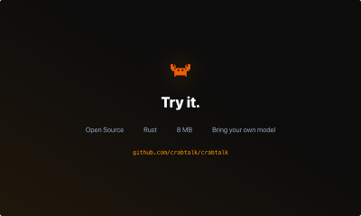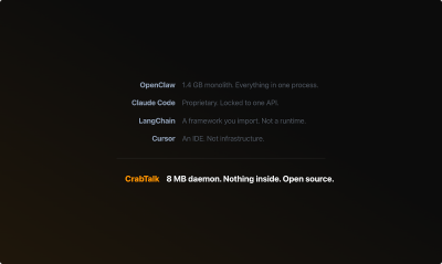 Crabtalk is a remarkably lightweight 8 MB daemon designed to provide real-time, comprehensive streaming of all agent events directly to your client. This includes granular data such as text deltas, precise tool calls, and intricate thinking steps, offering unparalleled visibility into agent operations. Its modular design allows you to selectively connect only the data streams you require, optimizing performance and relevance. Installation is swift and straightforward, requiring just a single curl command. Crabtalk also offers the flexibility to seamlessly integrate with your preferred AI models, ensuring maximum adaptability for your projects and enhancing your control.