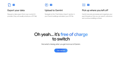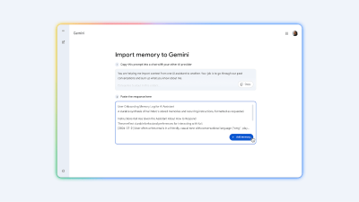 The Gemini app now offers an exceptionally smooth transition experience for users migrating from other AI chat applications, eliminating the need to start over from scratch. Google Gemini enables you to effortlessly import your valuable memories, personal preferences, and entire chat history from other AI platforms. This ensures you can switch without losing any crucial context, skip the tedious reset process, maintain seamless continuity in your conversations, and receive personalized responses instantly across all your workflows and interactions.