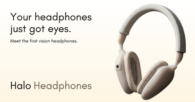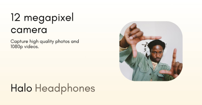 Halo headphones introduce a groundbreaking innovation as the first-ever headphones to feature an integrated camera. These beautifully designed headphones allow you to experience and capture moments precisely as you see them, while simultaneously enjoying your favorite music in high fidelity. Equipped with large, true stereo sound drivers for an immersive audio experience, a high-resolution 14-megapixel camera capable of filming 1080p quality videos, and a configurable action button, the Halos are engineered to be the ultimate companion for both exceptional sound and spontaneous content creation. Capture life's moments effortlessly, all from your ears.