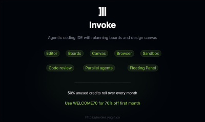Invoke Studio presents a cutting-edge desktop AI coding IDE, integrating visual planning, an intuitive design canvas, and intelligent AI agents to streamline your development workflow. Visually map out features on interactive Boards, define dependencies, and empower AI to construct your projects in a logical sequence. Design and refine user interfaces on the Canvas, where you can drag, resize, and edit elements visually before exporting them as production-ready code. Experiment safely in the Sandbox environment, featuring AI-powered merging capabilities. Deploy and manage parallel agents, and create custom subagents and agents tailored to your specific needs. Invoke Studio offers broad compatibility, working seamlessly with leading AI models including Claude, OpenAI, Google, xAI, and Ollama, and is available for free with your own API keys.