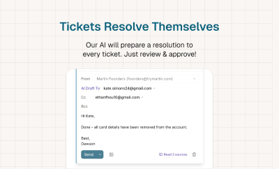 Letterbook stands as the modern, intelligent alternative to traditional customer support platforms like Zendesk, Freshdesk, Intercom, and Front. It offers robust integration capabilities, allowing you to seamlessly connect your existing database and Stripe accounts. At its core, our advanced AI support agent intelligently resolves customer tickets across multiple communication channels, including email, web forms, and other digital touchpoints. This innovative approach ensures efficient, automated, and consistent customer service, significantly enhancing your support operations and customer satisfaction.