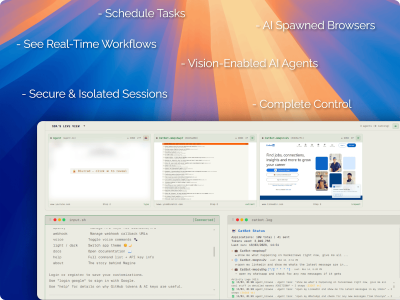 Magine AI introduces a powerful cloud of orchestrated, vision-enabled AI agents capable of autonomously browsing the web and interacting with digital environments much like a human would. Our platform is purpose-built for truly autonomous operation with zero human interference, empowering AI to 'see,' 'dream,' and continuously train in real-time, developing human-like cognitive abilities. Magine AI envisions a future where the internet becomes a dynamic space for intelligent bots, with humans serving as strategic observers and decision-makers.