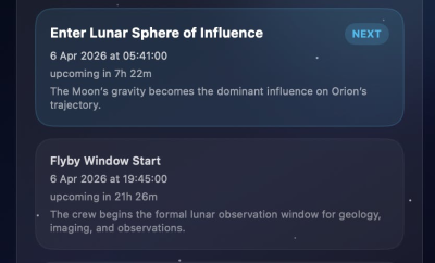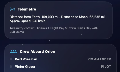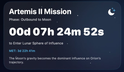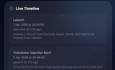Moonshot-13 is an elegantly designed macOS menu bar application, crafted with SwiftUI, offering real-time tracking of NASA's historic Artemis II mission. It provides comprehensive insights into mission phases, precise countdowns to critical lunar flyby and return events, and the mission elapsed time. Users can also view detailed crew information, live telemetry context, and an engaging space-themed Earth-Moon-Orion timeline. This application leverages publicly available NASA mission data and timeline updates, ensuring accuracy and providing an immersive experience for space enthusiasts and researchers alike.