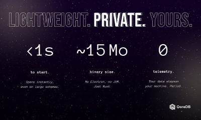 Traditional database management tools often fall short, with solutions like DBeaver feeling sluggish, pgAdmin appearing outdated, and the necessity of juggling multiple applications for different databases. QoreDB revolutionizes this experience by consolidating your database management into a single, powerful desktop application. It offers comprehensive support for 9 popular databases, including PostgreSQL, MySQL, MongoDB, Redis, SQLite, DuckDB, SQL Server, CockroachDB, and MariaDB. Engineered with Rust for superior performance and reliability, QoreDB prioritizes security with its local-first architecture; your sensitive credentials remain securely stored in an encrypted vault, ensuring your data never touches the cloud. Enjoy a modern SQL editor, efficient inline editing, secure SSH tunnels, robust production safety guards, and advanced full-text search capabilities. The core QoreDB platform is released under the Apache 2.0 license, making it free to use forever.