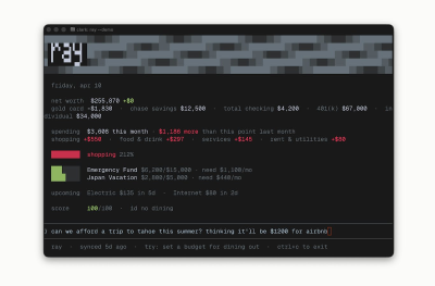 While many personal finance applications merely display data in charts, Ray-7 goes a significant step further by providing actionable advice and practical planning assistance. Functioning as a secure, terminal-based Chief Financial Officer, Ray-7 intelligently analyzes your real-world transactions, keeps your financial goals firmly in mind, and operates directly on your personal computer, ensuring your data remains private and off third-party servers. This powerful tool is completely open source and available for free, requiring only your own API keys for full functionality.