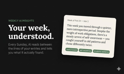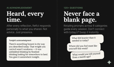 While most journaling apps present you with a daunting blank page, Reflct offers a profound mirror for self-discovery and reflection. Each evening, you are invited to answer three thoughtfully guided questions selected from a diverse library of over 120 rotating prompts, designed to encourage deeper introspection. Effortlessly log your mood with a single tap. The true power of Reflct lies in its advanced AI, which performs what humans cannot: it intelligently connects the dots across weeks and months of your entries, revealing subtle yet significant patterns in your mood, energy levels, and thought processes that would otherwise remain unnoticed. It's free to start, with no credit card required, allowing you to begin your journey of self-awareness immediately.