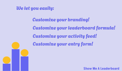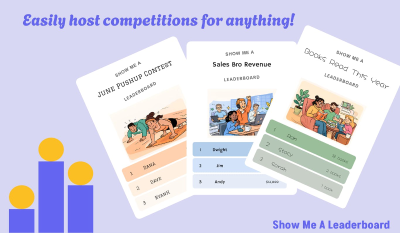 Show Me a Leaderboard provides an exceptionally easy and effective solution for companies, nonprofit organizations, and even friend groups to launch engaging competitions. Whether you seek friendly rivalry or intense challenges, our platform offers fully customizable leaderboards to track progress, unique badges to reward achievements, integrated forums for lively discussion, and timely notifications to keep everyone informed and motivated. Foster community, drive engagement, and add an exciting competitive element to any group activity with our comprehensive feature set designed for maximum interaction.