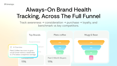 Timelaps empowers brands with crucial insights by conducting comprehensive primary research. We meticulously collect responses from over 4,000 real consumers within your precise target demographics, providing clear, actionable data on the effectiveness of your brand marketing strategies. Unlike conventional agencies or outdated trackers, Timelaps offers a solution that is five times more affordable, grounded in the most recent scientific principles of brand growth, and continuously updated with real-time data to ensure you always have the most current information at your fingertips.