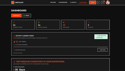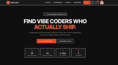 VibeTalent is an exclusive marketplace meticulously crafted for highly motivated and skilled developers, often referred to as 'vibe coders.' This platform empowers professionals to build and showcase their reputation through a transparent system that tracks consistent streaks of activity, verifiable proof of work, and a demonstrated history of shipping projects reliably. It serves as an essential hub for connecting top-tier talent with opportunities, fostering a community where consistent performance and tangible results are key to professional growth and recognition.